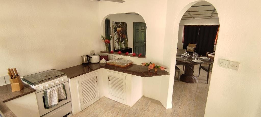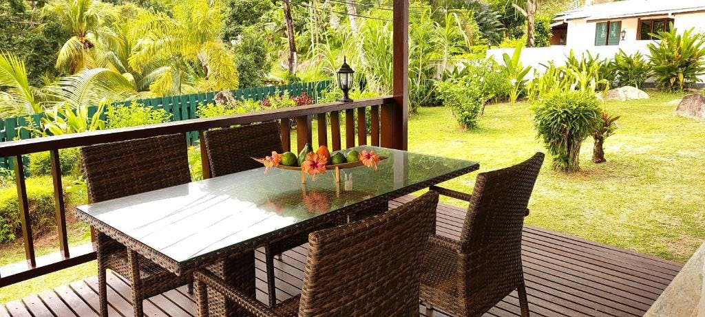 Whether you are travelling with family or with friends, our homely decorated Family Chalet provides the ultimatehome-away-from-home feeling. With its two double bedrooms and one single bedroom, it can accommodate up to five adults and upon request we may additional bedding for two children below 12 years of age. The room has a spacious living/dining area that allows precious get-togethers and game evenings as well as an outside sitting area with stunning view over the lush greenery of Takamaka. The open kitchen of this chalet is definitely the highlight of this room, for as it is fully equipped with every-day utensils.